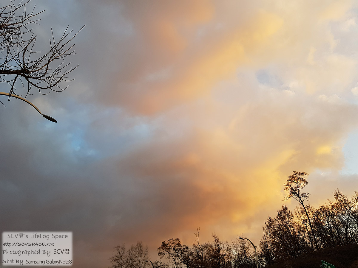 이날도 1년만에 뵙는 분과 저녁 약속이 있어서 나가던 길이었는데, 퇴근길의 구름 색이 영 오묘해서 한컷 남겼었네요.