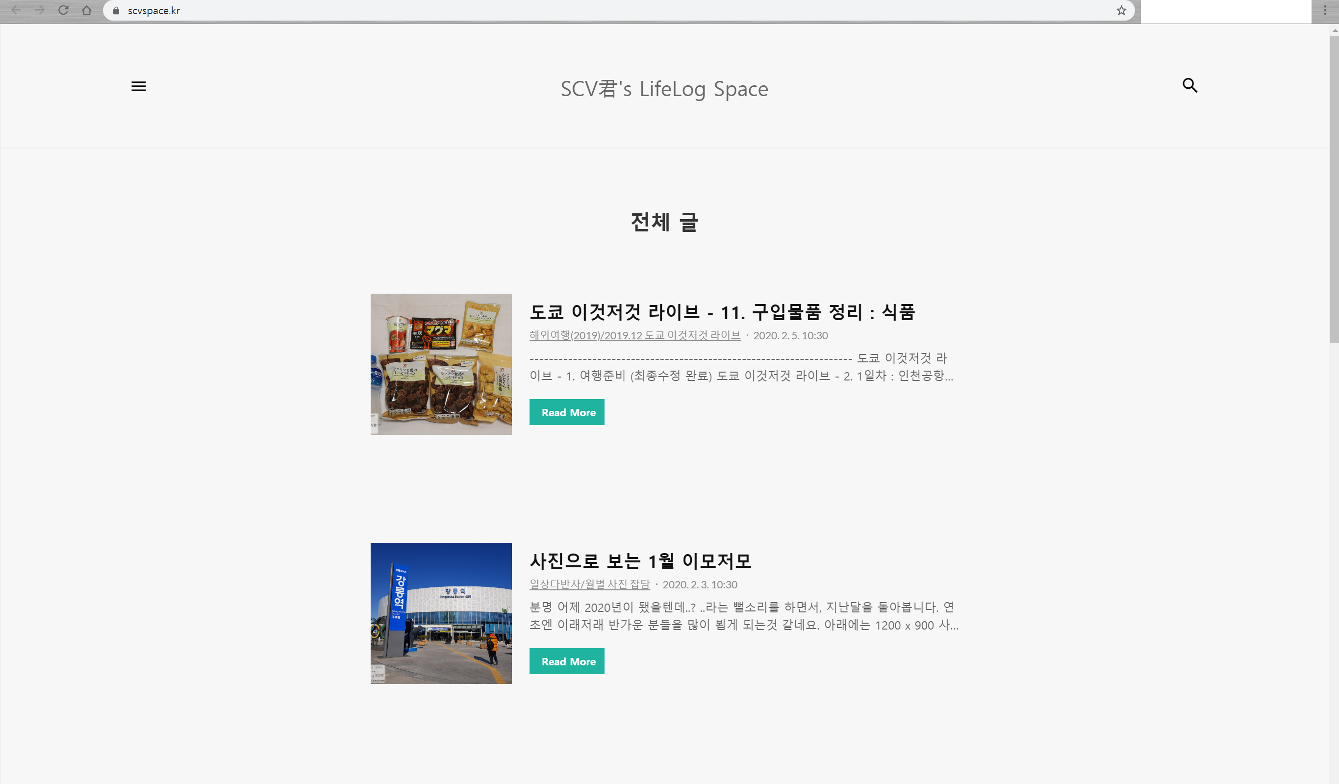 물론 제가 선호하는 1단 스킨인데다 좌측 상단 메뉴바를 클릭해 블로그 전체 카테고리를 볼 수 있는 점도 좋았구요.