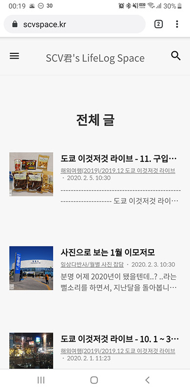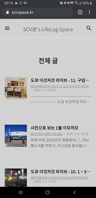 물론 직전 스킨도 반응형 스킨이었습니다만, 화면을 로딩한 뒤 자바스크립트 후처리로 상단 메뉴나 글 섬네일 이미지를 불러오다 보니