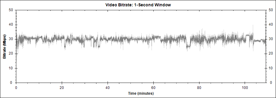 평균 비디오 비트레이트는 29,891 kbps. 1080p. 1시간 49분 7초짜리 본편은 31.1GB의 한 m2ts에 수록되어 있었습니다.