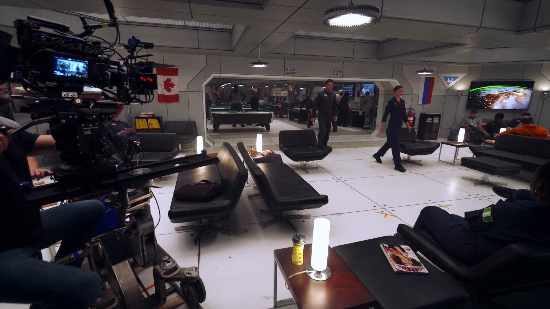큰 비중을 차지하는 우주 씬의 경우, 우주정거장 전체는 전부 CG로 작업했지만 내부 씬의 의외로 많은 부분이 리얼리티를 위해 세트를 사용했다고 하구요.
