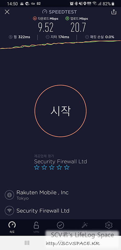1분 차이로 VPN만 연결하고 측정한거라 다른 변수가 개입할 여지는 거의 없었으리라 생각합니다.
