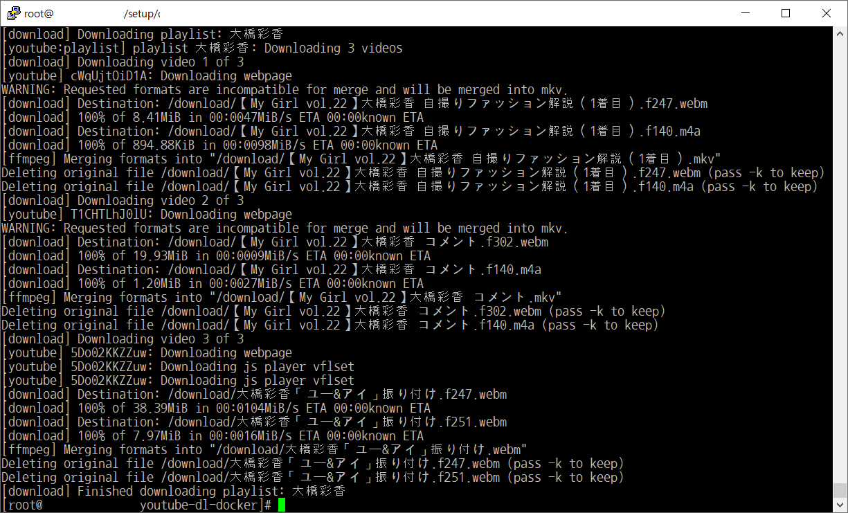 위 '실행 예시' 에서 -o 옵션부터는 youtube-dl 명령어집을 참고하여 명령어를 구성하시면 됩니다.