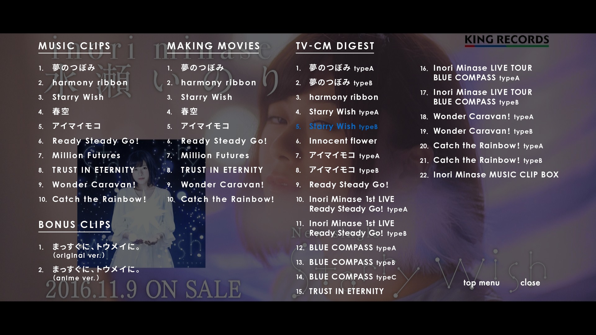 데뷔 싱글인 '夢のつぼみ' 부터 'Catch the Rainbow!' 까지의 메이킹 필름 10개가 각각의 m2ts에 수록되어 있으며