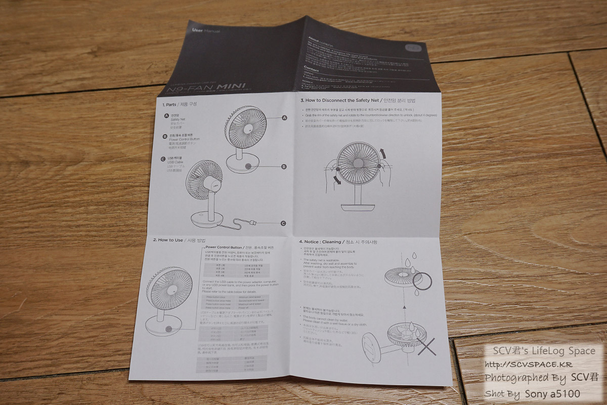 설명서에는 각부 명칭이나 청소법, 조작법, 주의사항, 상세 스펙 같은게 정리되어 있습니다.