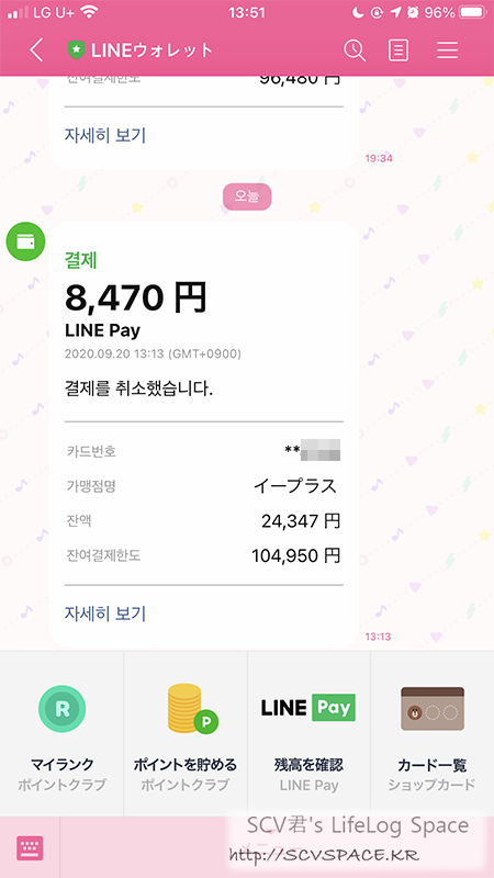 이제 라인페이 카드로 잔액 환불되는 일만 남았네요. 이건 또 얼마나 걸릴런지(...)