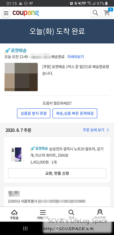 그리고 지난 금요일(8/7)부터 예약판매에 들어갔는데, 쿠팡에서 구입했더니 배송한다고 해준 전날 새벽(8/11 0:50) 에 배송을 해버리네요.