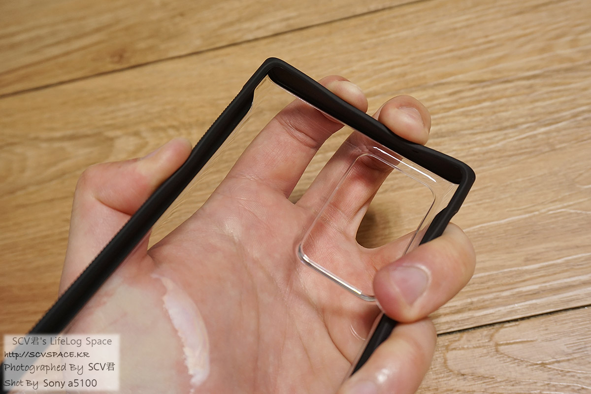 케이스 전체가 실리콘이다 보니 뒷면 중간은 완전히 밀착이 안되는지 본체를 꽉 쥐면 밀리는듯한 마찰음이 들리고.