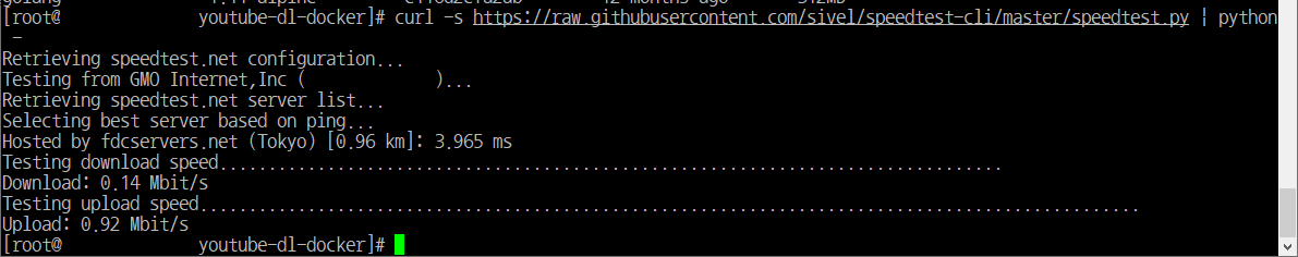 혹시나 해서 검색해 찾은 파이썬 스크립트로 속도측정을 해 보니, 상하향 진짜 1Mbps도 안나오네요.