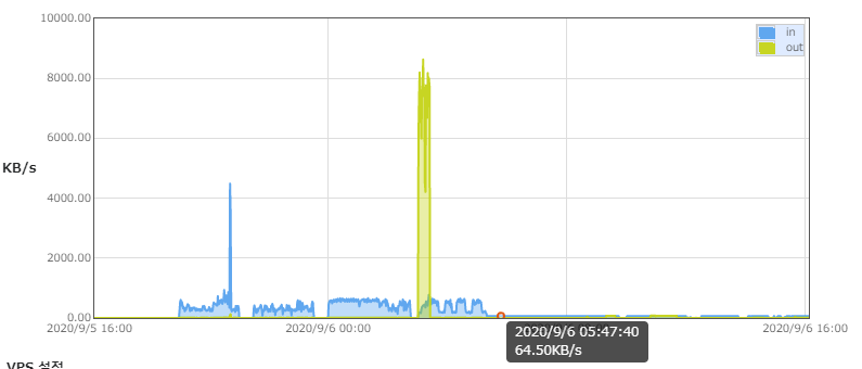 모니터링 로그를 보니, 일요일 새벽 5시 조금 넘어서부터 트래픽이 60KB/s 를 넘지 못했더군요.