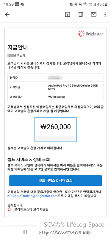 다행히 처음 안내받은 매입가 대로 확정되어 위와같이 최종 지급안내 메일이 왔네요.