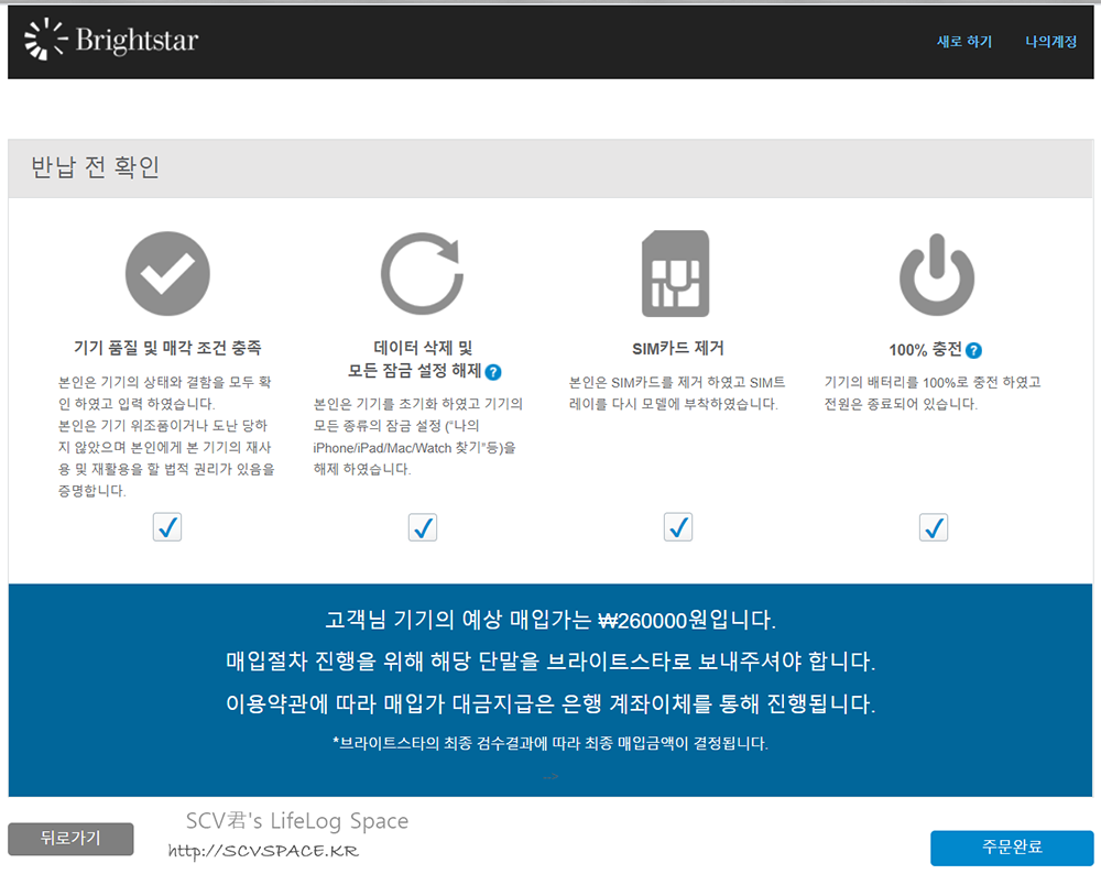 최종적으로 주요 체크사항을 한번 더 확인시킨 후 절차가 끝납니다.