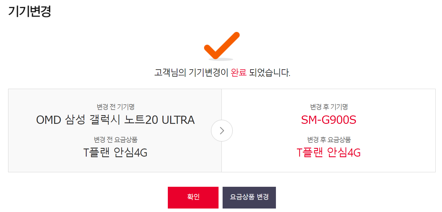 갤럭시 노트20 울트라는 5G 단말기인데, 저는 LTE 요금제를 계속 쓰는 중이라 SKT에서 확정기변(전산기변)을 안해주기 때문이죠.