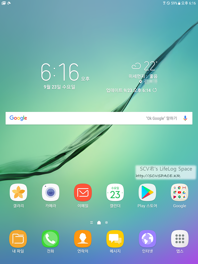 그리고 평소에 쓰던 앱 & 태블릿에서 쓸 앱들을 설치하고 화면을 꾸며보고 나니 위 오른쪽과 같이 됐습니다.