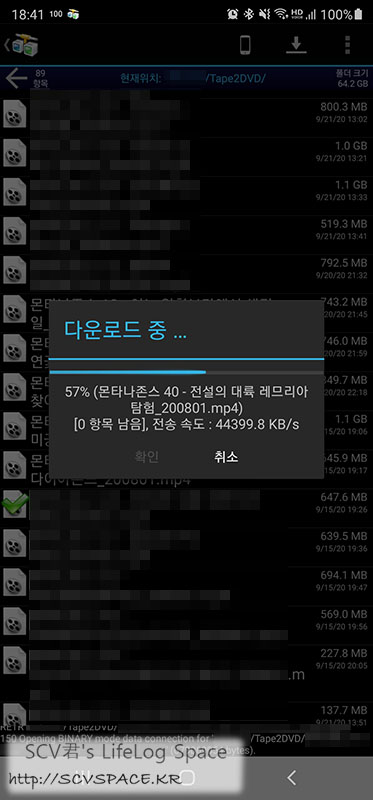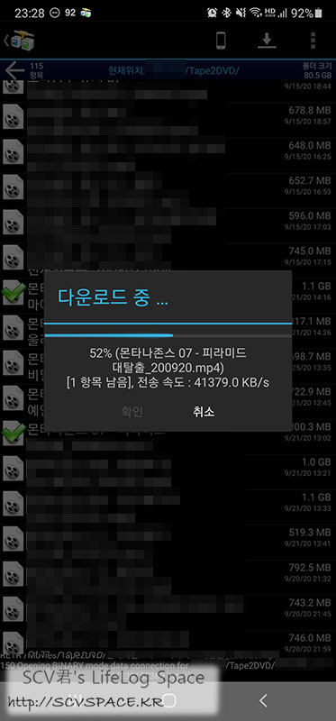 우선, 스위치 허브를 설치하기 전 NAS -> 갤럭시 노트20 울트라로 파일 전송하는 모습입니다.