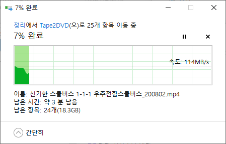 데스크탑의 경우, 최고 속도가 115MB/s 정도까지 나오기는 하지만 NAS가 사용중이 아닌데도 속도 변동폭이 컸습니다.