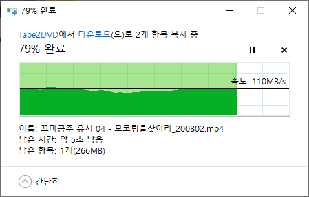 같은 환경에서 NAS -> 갤럭시 노트20 울트라로 파일 전송하니 속도가 1/4 가까이 줄었습니다.