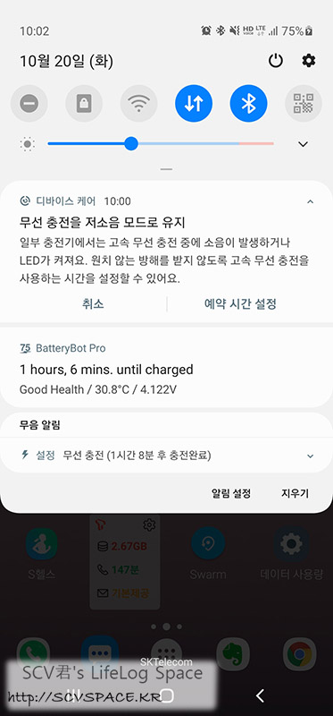 아침에 출근해서 써보니, 10W대 무선충전 중이라 그런지 위와 같은 안내문이 뜨더군요.
