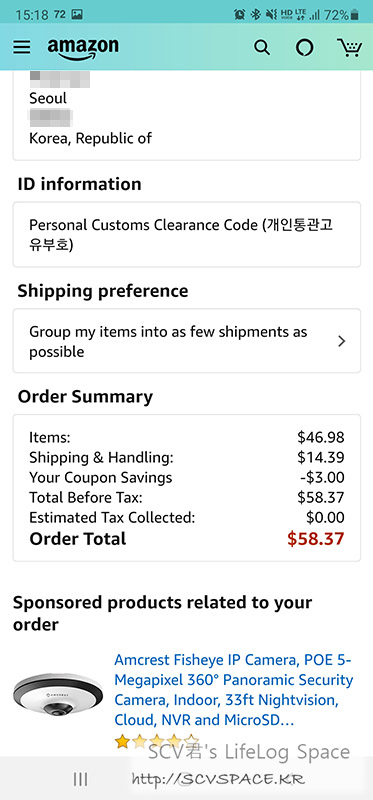 무선충전 거치대 쪽에 3달러짜리 추가 할인쿠폰도 붙어있어서, 케이블까지 넣고 배송옵션은 최속으로 골라봤네요.