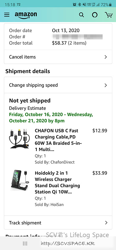 주문은 한국시간으로 10/14(수) 오후 늦게 진행했습니다.