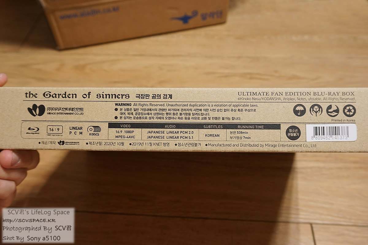 구성은 공의경계 극장판 종장까지의 디스크 8장과 가이드북, 아트북, 특제 수납박스까지 한세트,
