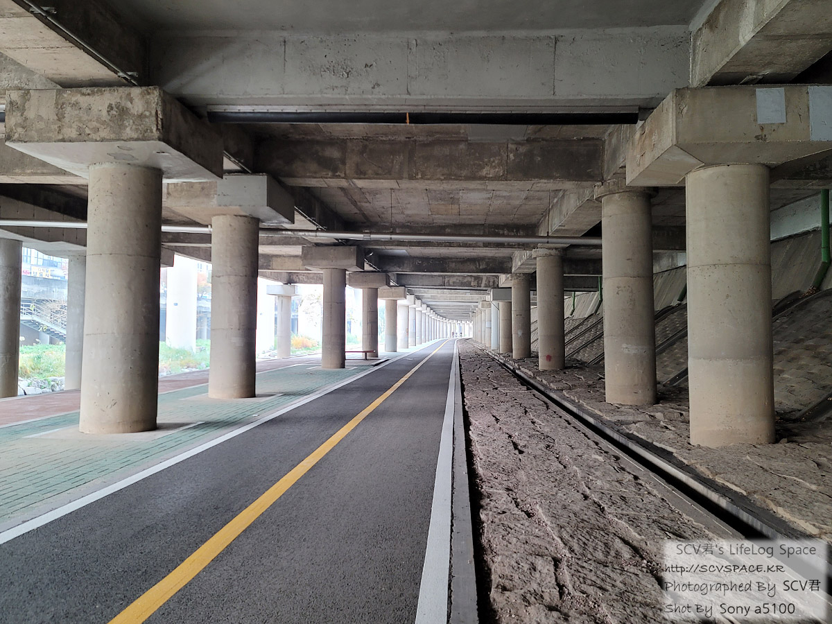 지도앱에서 안내하는 경로대로 인도와 일부 자전거도로를 따라가다 보니 지하차도 아래는 이렇게 자전거 전용도로가 있더군요.