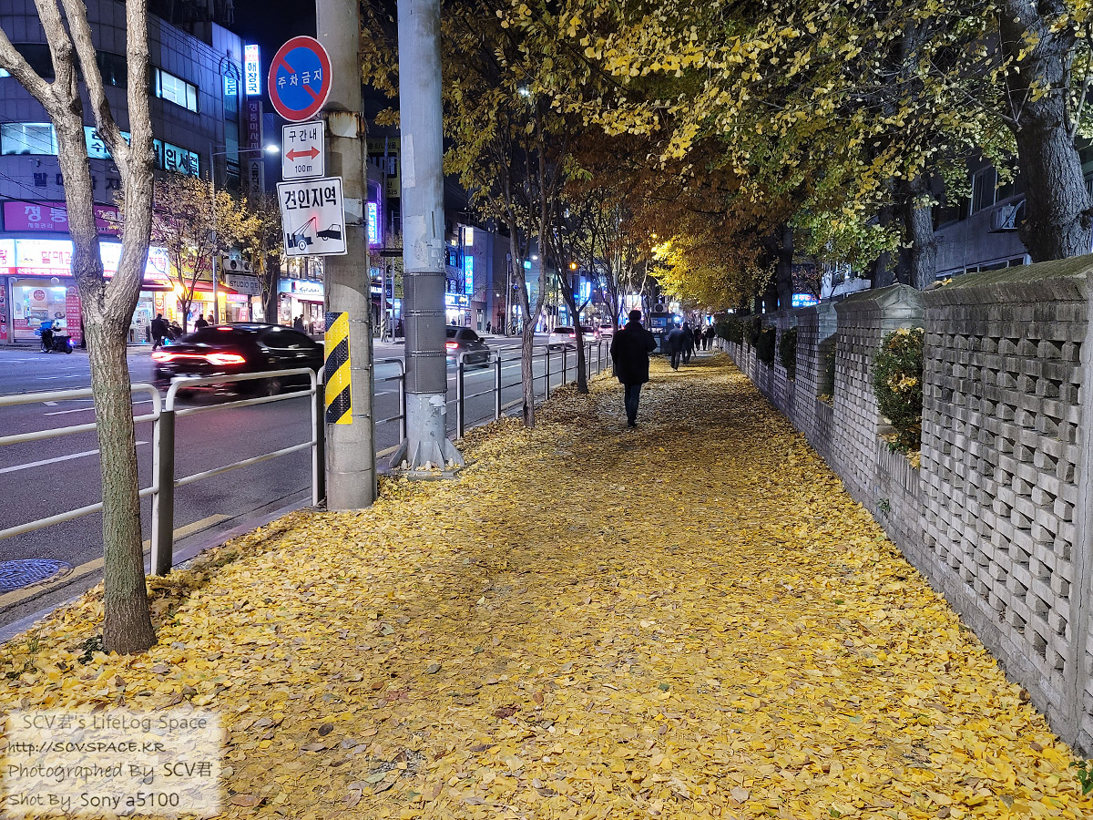 퇴근길에 들러야 할 곳이 있어서 역에서 내려 그곳까지 걷는데, 갑자기 추워진 날씨 때문인지 은행잎이 한가득 떨어진 거리를 만났습니다.