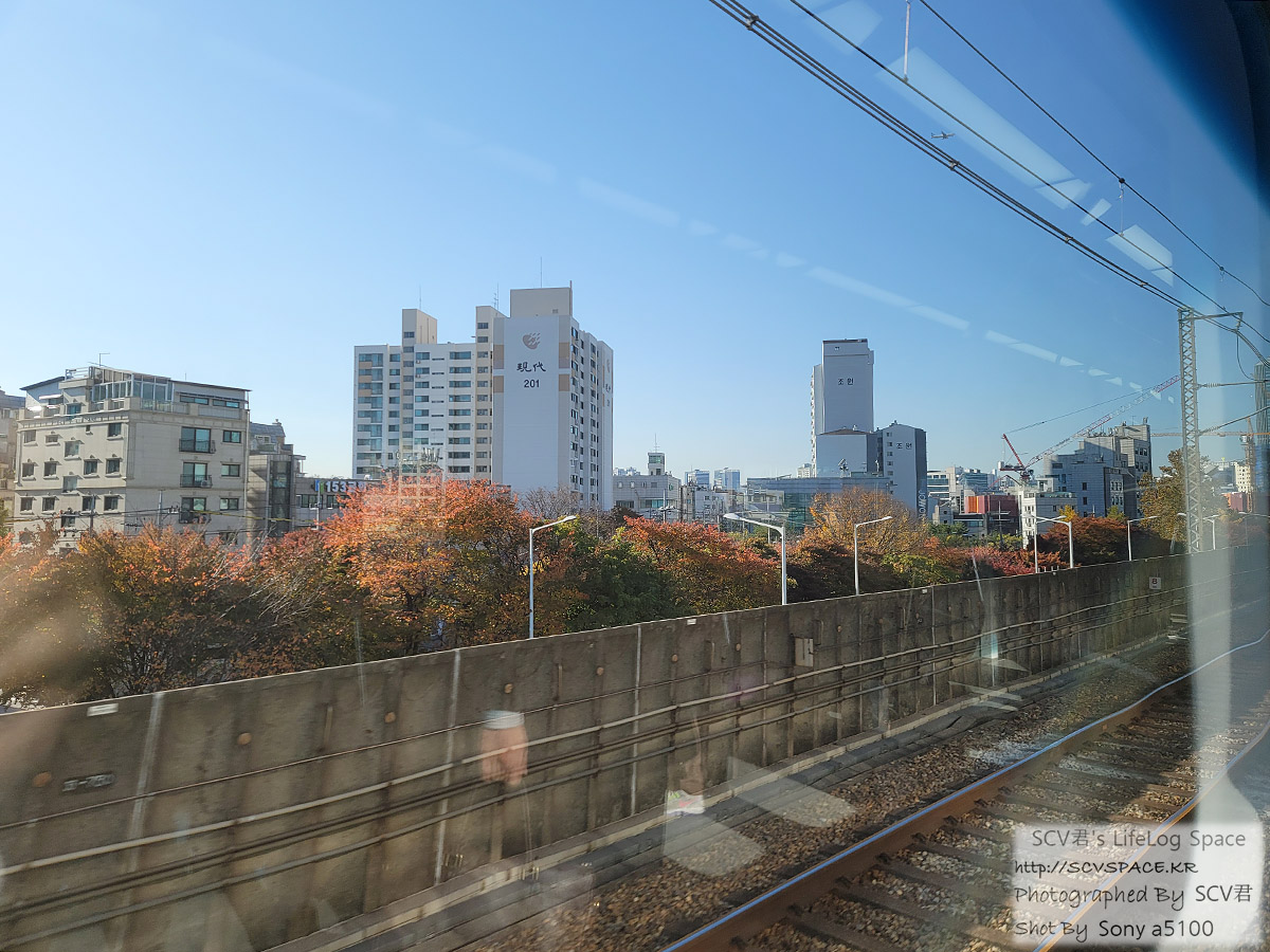 아직까지는 하늘도 맑고 그리 춥지도 않을 때라, 햇볕 들어 적당히 따뜻한 전동차 안이 왠지 좋았습니다.
