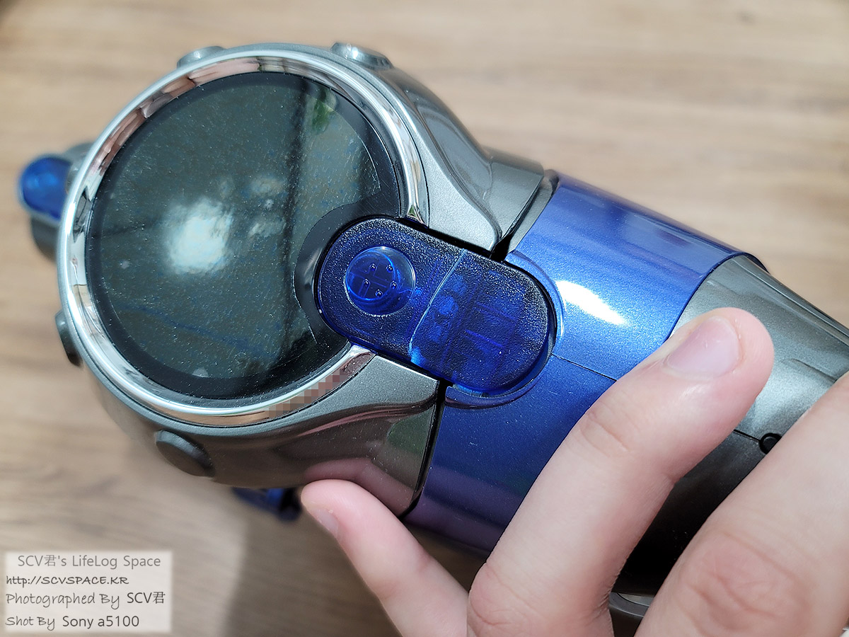 이 고정 클립은 앞쪽의 먼지통과 모터가 들어있는 뒤쪽 본체를 고정시켜 주는데,