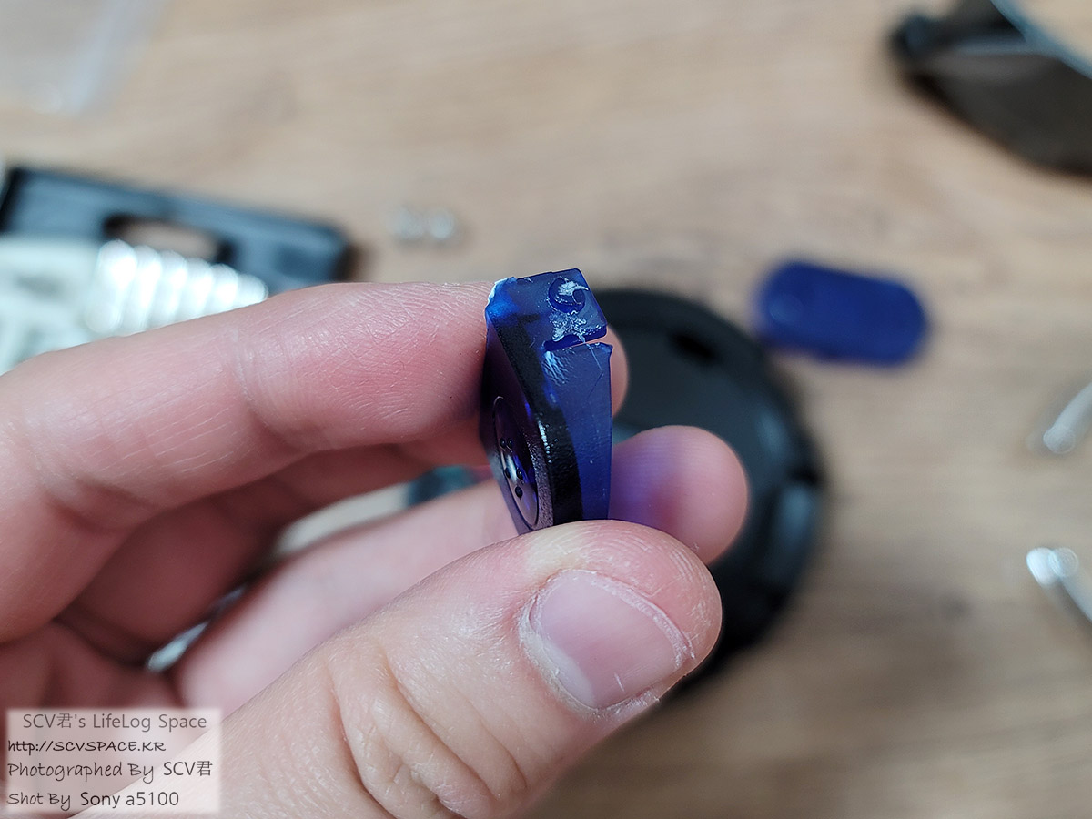 근데 쓰기 시작하고 1년째가 되어가니, 위쪽의 고정 클립에 금이 가기 시작했습니다.