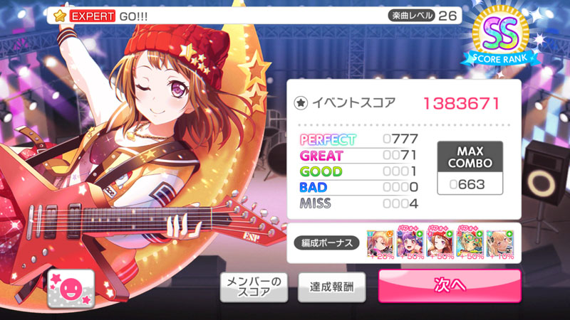 참고로 별도 표시한 것을 제외하곤 왼쪽이 스타라이트 스테이지, 오른쪽이 BanG Dream!의 결과화면입니다.
