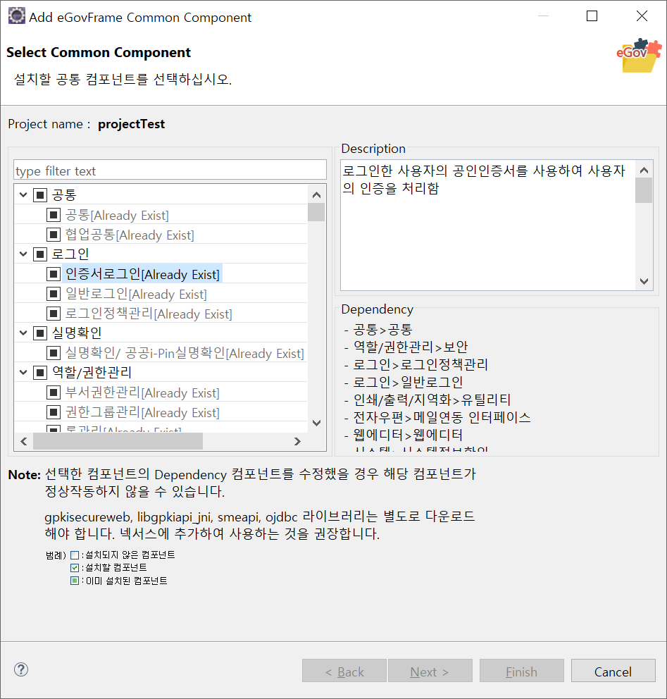 이 중에서 이번 글과 관련된 구성요소 '인증서 로그인' 이 선택되어 있는 것을 확인합니다.
