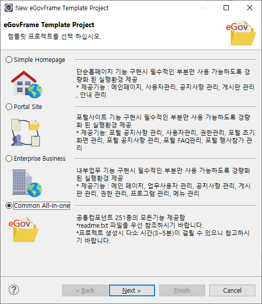 제 경우는 모든 구성요소가 다 포함된 Common All-in-one 을 선택하였습니다.