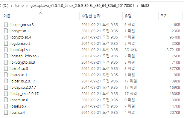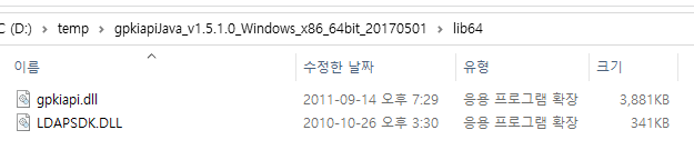 이걸 아까 GPKI_API_LIB_HOME 변수로 설정한 경로에 넣어줍니다.