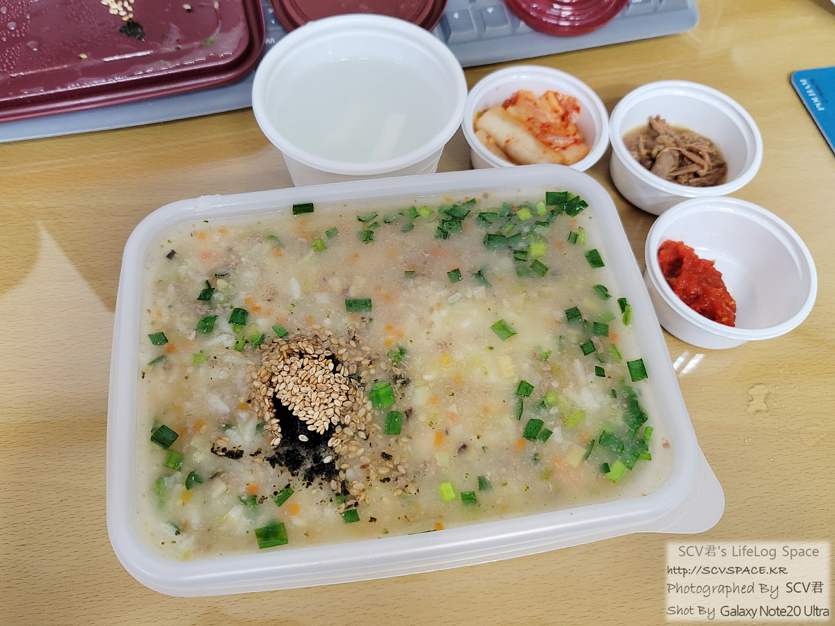 주말에 고기 신나게 먹고 배탈로 잠도 못자, 배도 아파 난리여서 배라도 달래려고 이 주 점심 첫끼는 죽을 골랐습니다.