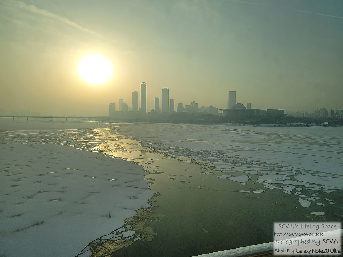 오후부터 날이 풀리는(영상) 것으로 예보되어 있었는데, 아직 아침은 영하라 얼은 한강이 거의 녹지 못했습니다.