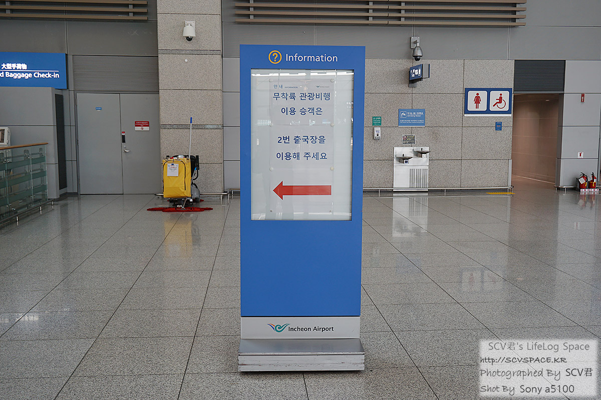 사진은 못찍었지만 내부의 면세점과 음식점(롯데리아 등) 에는 관광비행 안내 비표를 걸고 있는 승객에게만 판매 가능하다고 적어놨더군요.