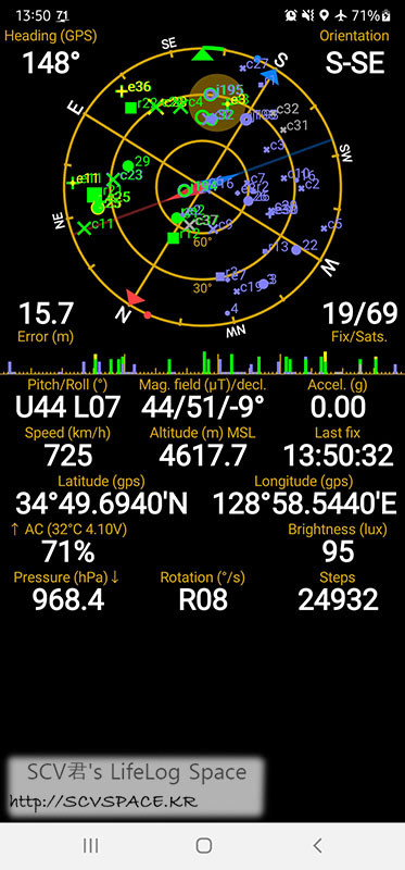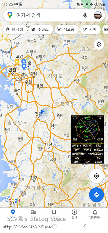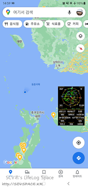 적당히 날아오른 뒤 일정하게 속도와 고도가 변하는것 같아서 운항정보와 위치를 한컷씩.