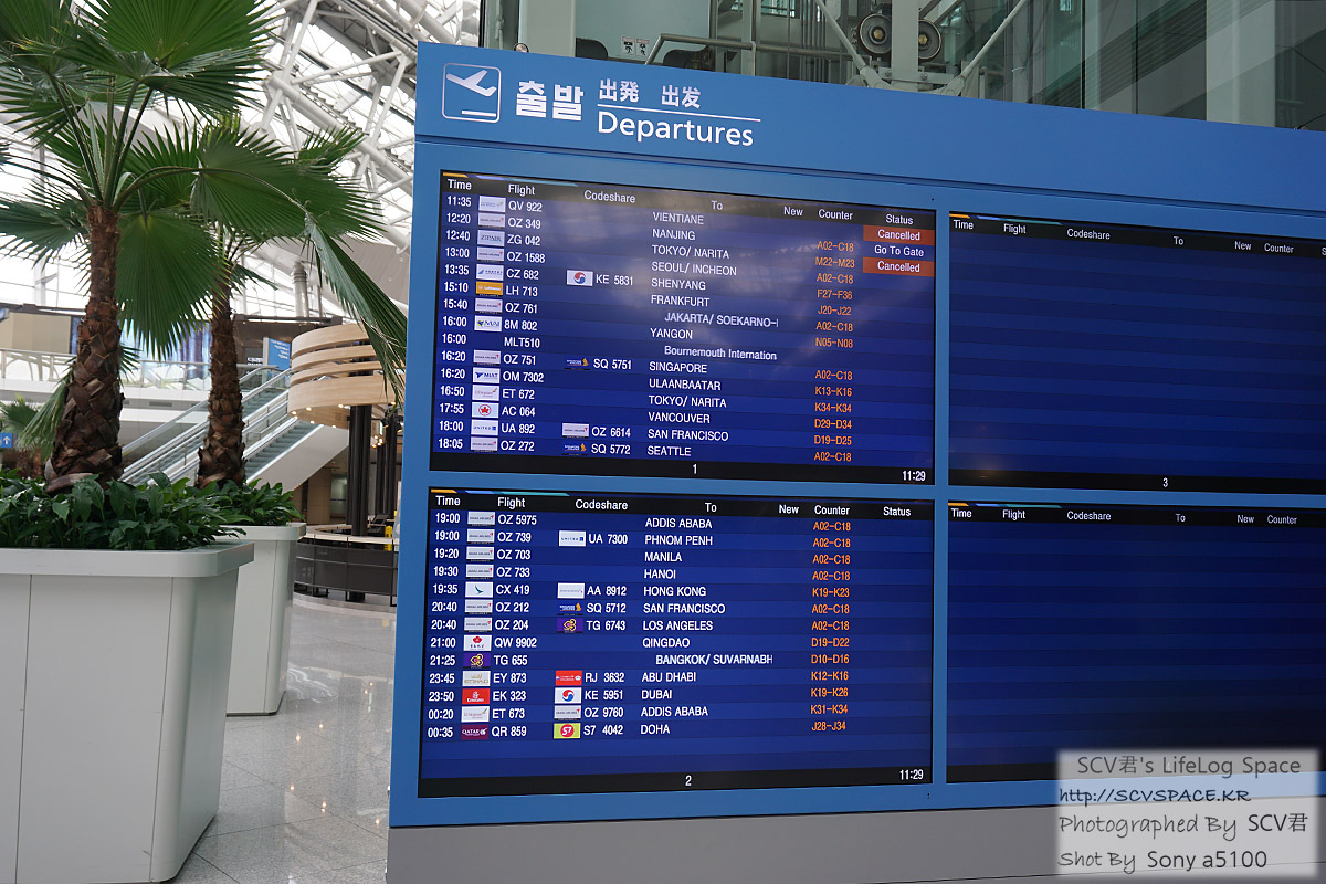 분명 인천공항은 어느 시간대에 오더라도 한가한 느낌이 없었다는 인상이라 다른것보다 출발편 표시 디스플레이가 휑 한게 제일 와닿습니다.