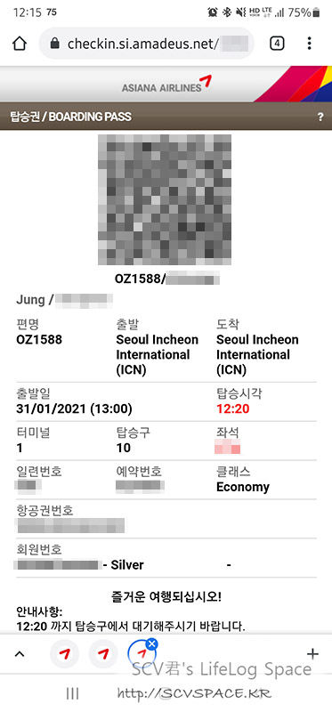 24시간 전부터 웹 체크인이 가능했던지라 미리 모바일 탑승권도 받아두고. (모바일 탑승권 이용 권장)