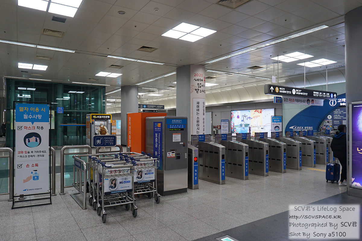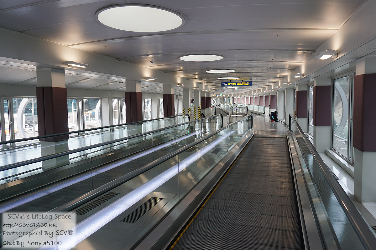 개찰구를 빠져나와 교통센터에서 1터미널로 가는 길.