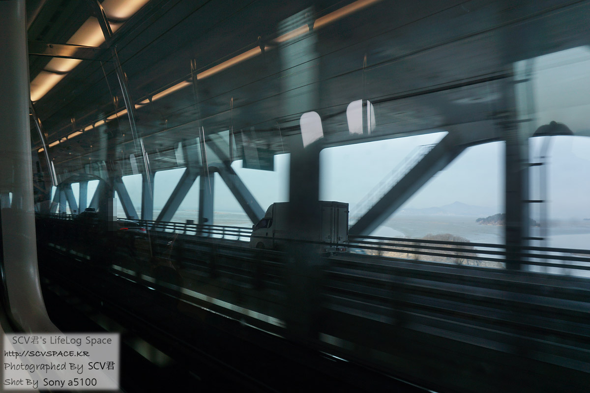 생각보다는 사람이 남아있던 인천공항 2터미널행 공항철도 열차는 이제 영종대교를 건너 인천공항에 가까워져 옵니다.