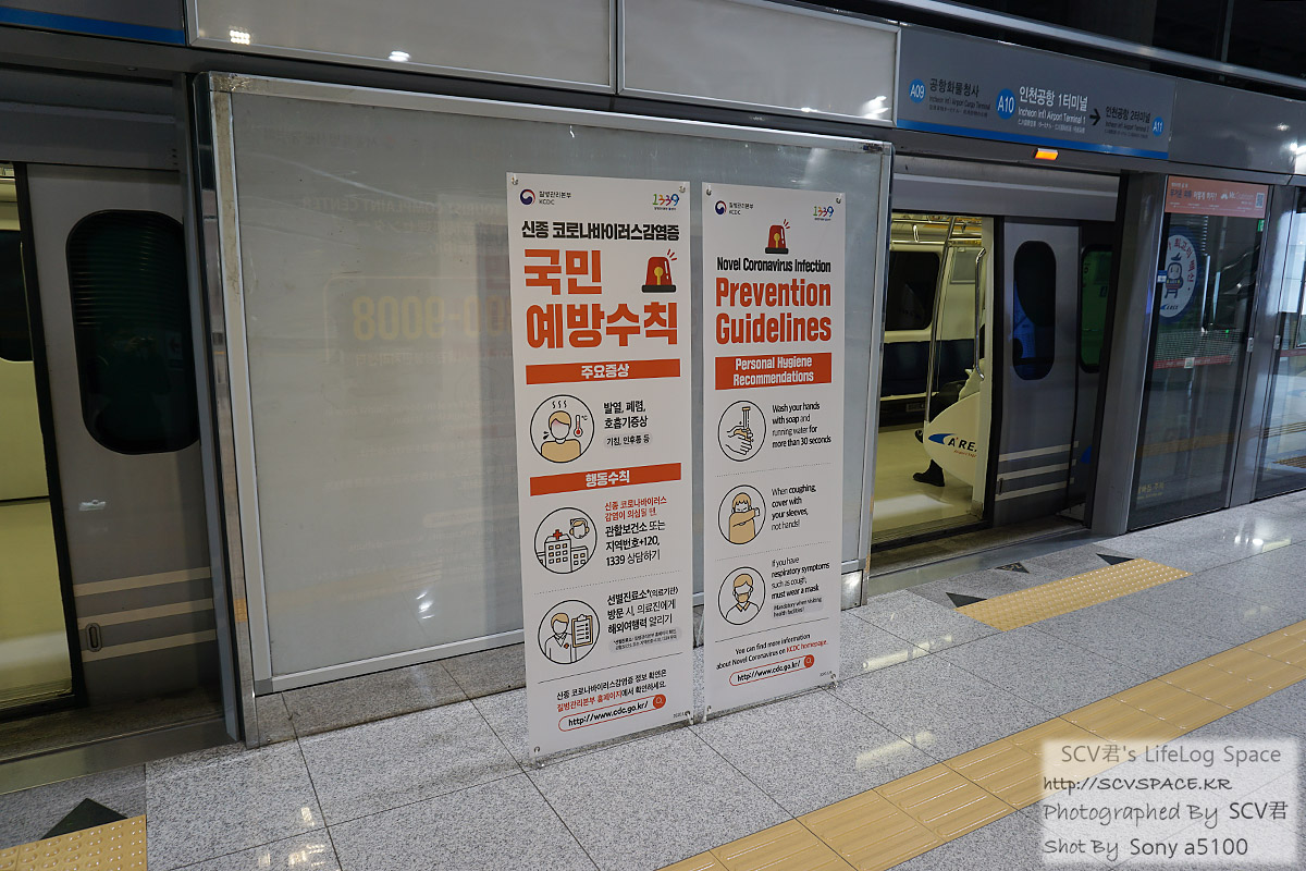 해외 입국자는 공항철도 이용을 할 수 없는데, 저는 비표를 목에 걸고 공항철도를 타러 갑니다.