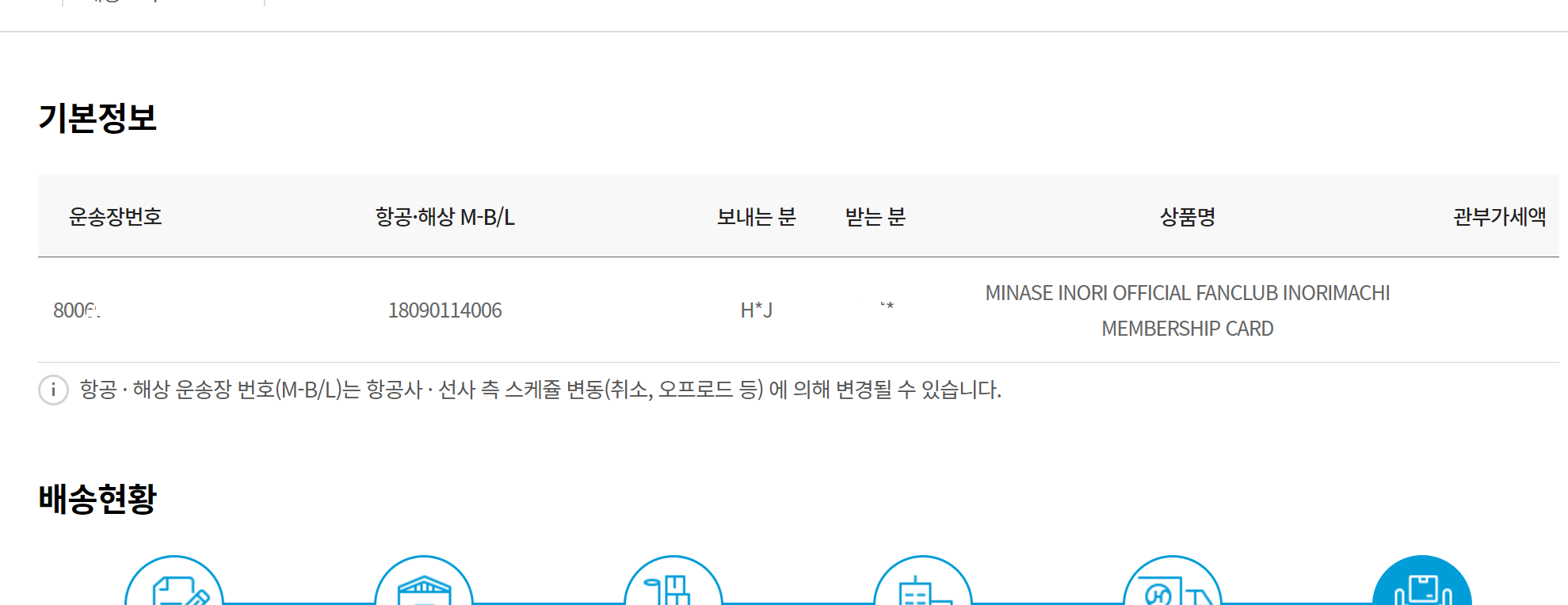 배송이 자사 항공기로 진행되기 때문일텐데, 타사의 경우도 나중에 통관할때쯤 되면 통관조회를 통해 M-B/L을 알 수 있게 되긴 하지만