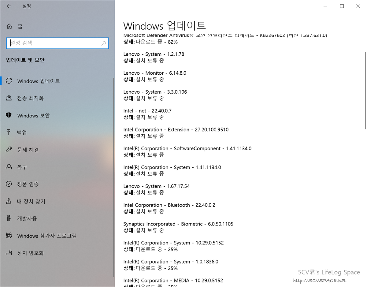 평소처럼 윈도우 업데이트도 한번 순회한 다음, (유난히 시스템 업데이트가 많았네요)