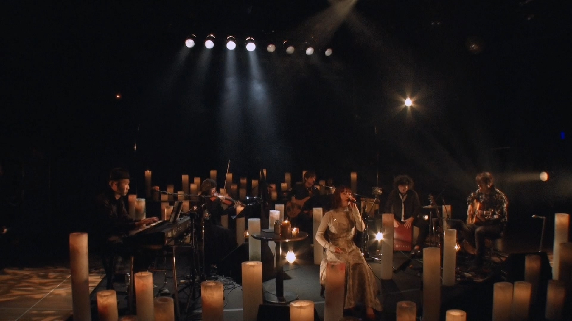 연주자들 주변에 100여개의 캔들이 배치되었고, 가운데 앉아있는 쿠스노키 토모리 본인도 계속 앉아서 노래를 했구요.
