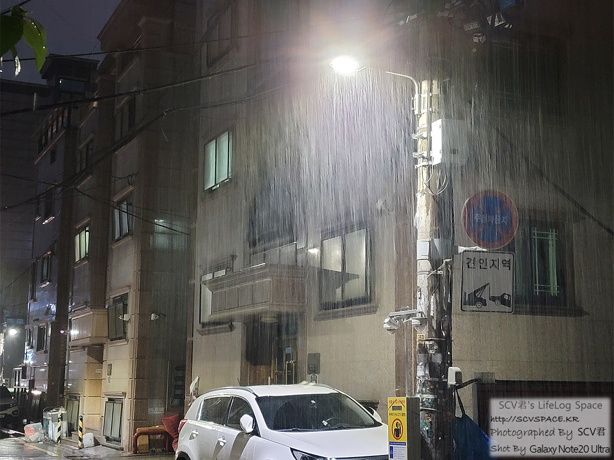 밤에 소나기로 30분 이내에 강한 강수가 집중된다더니 마침 외출하는 타이밍에 그 거센 비를 만났습니다.