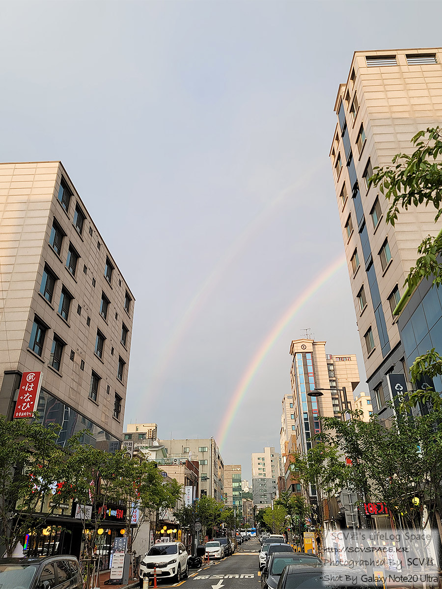 그 대신 집 근처까지 오니 방금까지 비가 왔었는지 저 멀리 무지개가 이중으로 보이더군요.