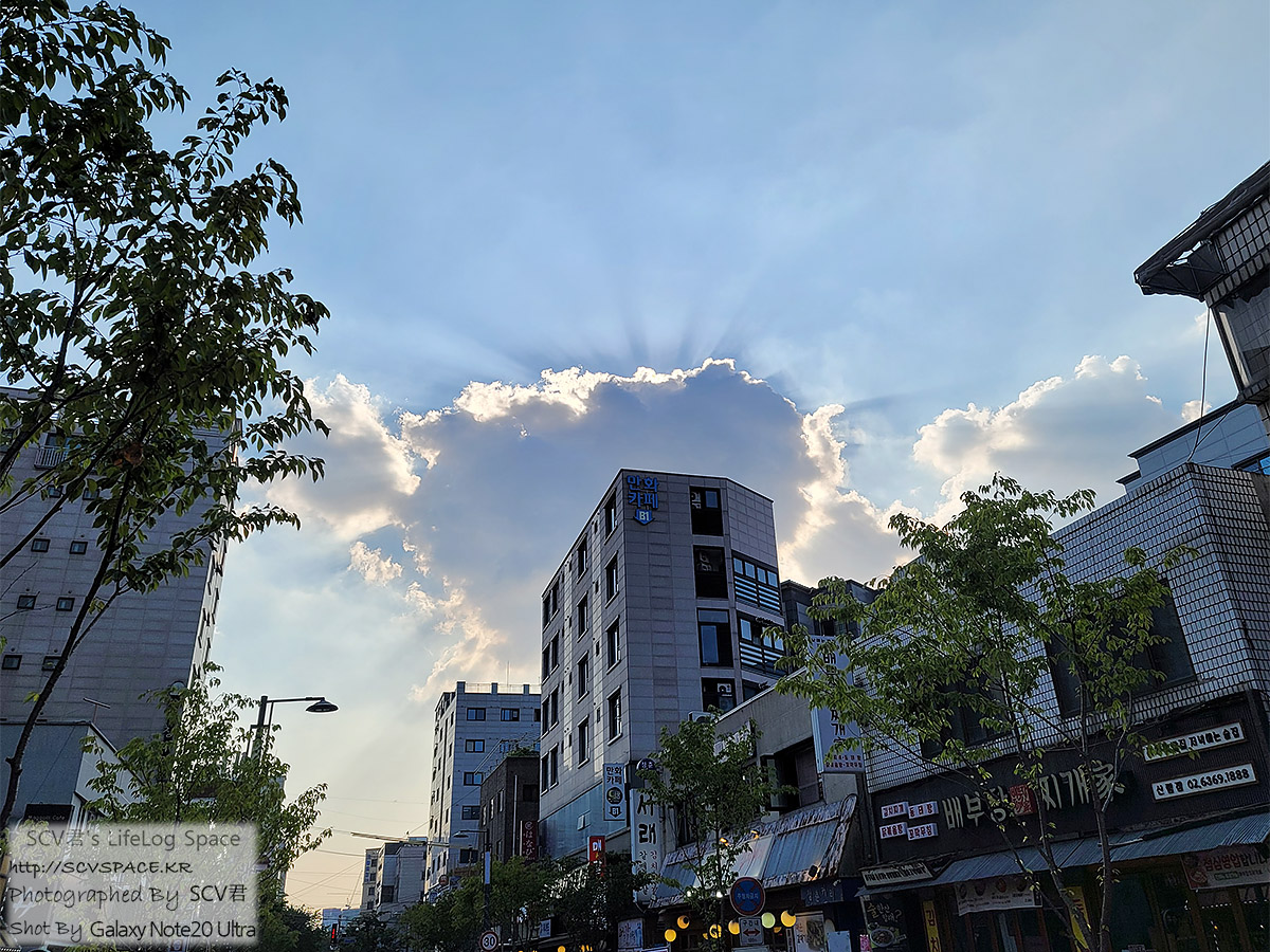 여느때처럼 더위에 지친 몸으로 집 가던 길에 만난 하늘.