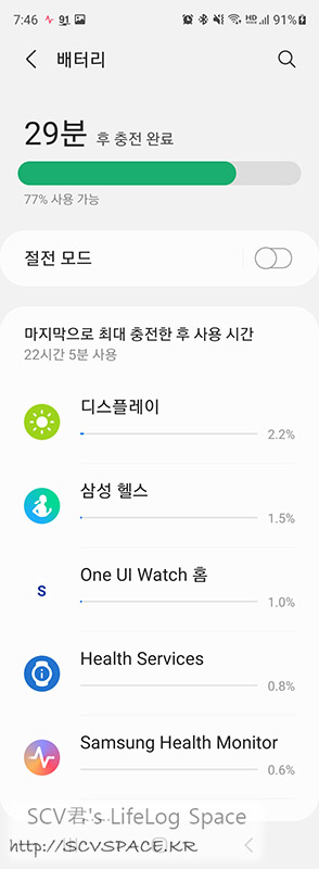저는 보통 저녁 8시 전후로 샤워를 하면서 스마트워치류를 풀어놓고 충전을 하는데(휴일도 대략 이 시간 전후)
